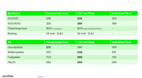 I det nye Fiber aftale tilbud (Fra YouSee) er det internet som vi hæfter os ved, hvori den gamle aftale er det TV.